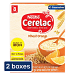 Nestlé Cerelac Baby Cereal with Milk is a complementary food for infants aged 8 to 24 months. As infants and young children have higher nutrient requirements than adults, two servings of Cerelac Wheat Orange Cereal provide 37% of a baby’s daily iron needs^. It is also a source of 14 essential nutrients, including vitamins and minerals. Vitamin A, Vitamin C, and Zinc help support a healthy immune system.