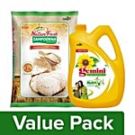 bb Combo Gemini Refined Sunflower Oil 5lt Can + Nature Fresh Atta - Chakki Fresh 5kg Bag, Combo 2 Items