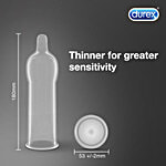 Durex brings to you the thinnest ever condoms for greater sensitivity and intimacy, while still providing a high level of protection. Each Durex condom is dermatologically tested to ensure strength and a high level of protection. Made of premium quality latex, Durex condoms are reliable. Durex Air condoms are designed to feel more natural, while the transparent ultra-thin latex helps highlight sensitivity. They are walled fit for him, providing greater sensitivity to where it is needed the most. An amazingly lubricated condom, Durex Air also eases friction and avoids stickiness for ultimate comfort and enjoyment for her too. What is more is that these condoms also are made to smell better which helps dodge distractions for an absolutely involving experience for both the partners. Now experience love closer than ever with the latest and the thinnest creation by Durex.