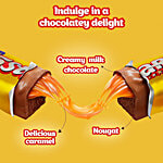 Simply indulge in this delicious chocolate bar. Enjoy the smooth-textured caramel chocolate of 5 Star. Immerse yourself in the creamy centre of this Cadbury milk chocolate and savour the long-lasting chewy experience of melted caramel & nougat. Treat yourself to a 5 Star chocolate pack, now available in new variants like 5 Star 3D and 5 Star Oreo, also available in a shared pack home treat bag. Just like every bar of Cadbury Dairy Milk, this chocolate packet is made from sustainably sourced cocoa and is suitable for vegetarians.