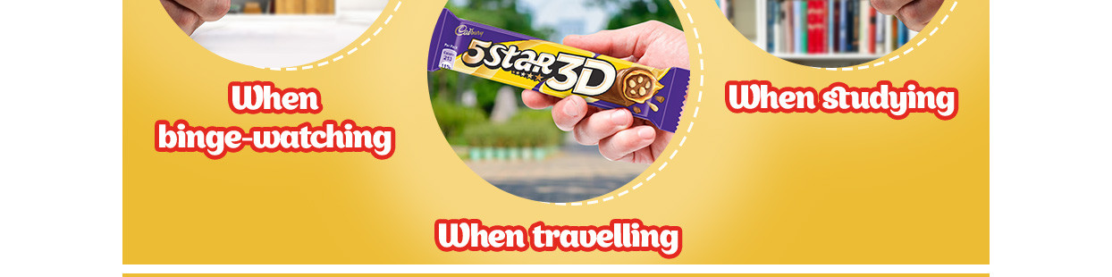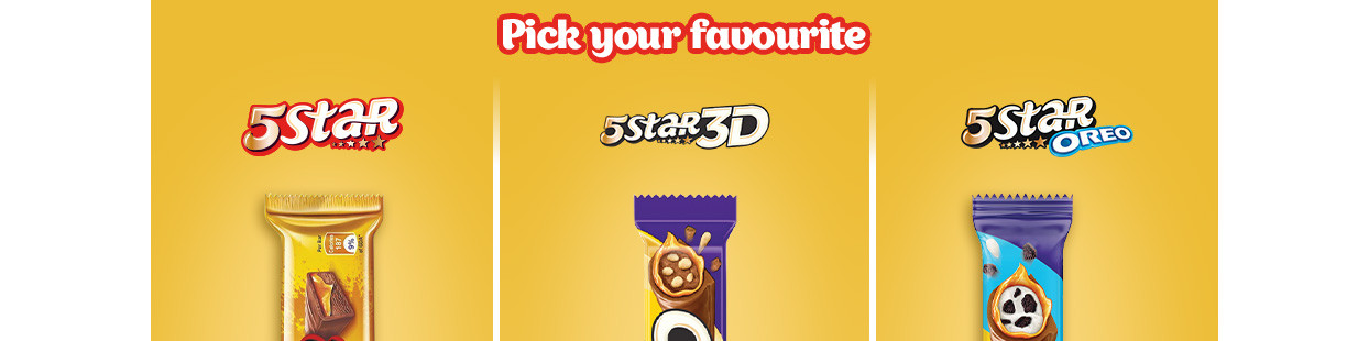 Cadbury 5 Star 3D do nothing but munch on this delicious chocolate bar. Indulge in Five Star 3D chocolate, smooth textured chocolate with crunchy wheat crispies surrounded in flowing caramel. Get lost in the chocolate cream centre and enjoy the moment. Gift yourself a 5 Star 3D chocolate pack and try 5 Star Oreo & 5 Star caramel chocolate which is also available in a share-pack home treat bag. Just like every bar of Cadbury Dairy Milk, this chocolate packet is made from 100% sustainably sourced cocoa and is suitable for vegetarians. Don't forget to leave a 5-star review.