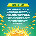 Water, Sugar, Orange Juice (11. 8%), Acidity Regulator (330) And Antioxidant (300). Contains Permitted Synthetic Food Colours (110, 102) & Added Orange Flavours (Natural, Nature-identical And Artificial Flavouring Substances). Contains Fruit.