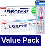 Sensodyne Toothpaste-Repair & Protect 70g+Fresh Mint 75g+Toothbrush 3pcs Buy 2 Get 1 Free, Combo (3 Items)