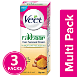 Enjoy a pleasant hair removal experience with Veet Nikhaar Hair Removal Cream with the goodness of Turmeric, Sandal & Saffron. It gives you smooth and visibly brighter skin with every depilation. This hair depilation cream is painless and great for instant use. It effectively removes even short, stubborn hair and leaves skin moisturized for up to 24 hours. It can be used on legs, arms, bikini line and underarms for a perfectly finished hair-less skin.