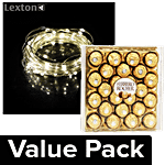 No Question askedbb Combo Lexton String Led Light With Adapter 10 mt + Ferrero Rocher - Chocolate 24 pcs