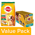 Pedigree Dry Veggie 3kg+Wet Chicken & Liver Chunks in Gravy 70gx15 Packs (For Adult Dogs), Combo 2 Items