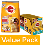 Pedigree Chicken, Egg & Rice 3kg+Wet Chicken & Liver Chunks 70gx15 Packs (For Adult Dogs), Combo 2 Items