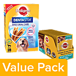 Pedigree Oral Care Dentastix 25kg+ Dogs, 1.08kg+Chicken & Liver Chunk (Adult) 80g 15Packs, Combo 2 Items