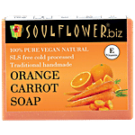 100% pure, natural, vegan and cold-pressed Soulflower orange carrot soap is a handmade, hand-cut, natural oil-based soap. Orange essential oil hydrates your skin while the juice of fresh carrots makes it soft and smooth. Orange, ginger and carrot juices repair your skin tissues. Fight off acne with the antiseptic properties of turmeric and ginger powder while this soap makes your bathing experience refreshing with its fruity aroma and sweet foamy lather.