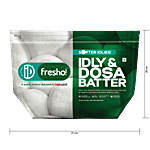 The ID Fresho idli/dosa batter is a ready-made mix that saves your time and energy to create a dosa batter from scratch. Typically, an idli/dosa batter involves a three-step recipe which includes soaking the rice, grinding and fermenting it. But with this readymade batter, you can make crispy dosa and fluffy soft idlis at no time at all. This Batter serves to cook 17 to 20 idlis of 12 to 14 dosa. Fermented foods like idli/dosa are highly nutritious and easier to digest. This is due to the beneficial micro-organisms that are involved in the fermentation process, adding live enzymes, B vitamins and protein to the food is perfect for a light snack, that is a notable amount of protein and fibre with minimal carbohydrates. They also help to aid in digestive comfort, regular bowel movement, healthy and radiant skin, increased energy levels, loss of excess weight, and possible decrease of sugar cravings.