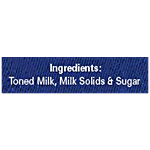 Toned Milk, Milk Solids And Sugar. It contains permitted synthetic food colours and added flavours.