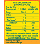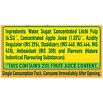 Water, Litchi Pulp (23.1), Sugar (12 G), Stabilizer (ins 440), Acidity Regulator (ins 296), Antioxidants (ins 300). Contains Added Nature Identical Litchi Flavour.no Added Colour Or Preservatives.