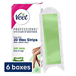 Veet Ready-to-use Wax Strips For Dry Skin - Up To 28 Days Of Smoothness, 6x20 Strips (Multipack) (Get 4 Post Finish Wipes)