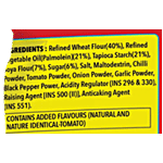 These mouth-watering tomato chilli sticks are a favourite of one and all. They are healthier, crispier and mouth-watering tomato flavoured snacks made from wheat, edible starches, potato flour & all-natural ground spices. Piknik is sweet, spicy and fulfils every fantasy of your taste buds. 25% less oil than potato chips ensures that you don't put on those extra kilos, making it fit for consumption at your convenience.