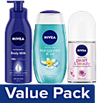 Nivea Cleanse, Care, Refresh: Body Lotion + Body Wash + Women Roll On, Combo 3 Items