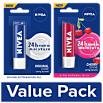 Nivea Lip Balms: Cherry Shine + Original Care - With Natural Oils for Soft Lips, Combo 2 Items