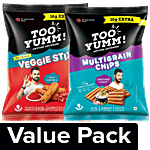 Too Yumm! Veggie Stix- Chilli Chataka+Multigrain Chips-Dahi Papdi Chaat (65g Get 10g Free), Combo 2 Items