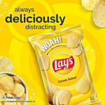 When it comes to great taste, simplicity is key, and Lay's Classic Salted Potato Chips are here to prove it. It all starts with the highest quality farm-grown potatoes, cooked to crunchy perfection, and sprinkled with microlite salt. The Lay's Classic is a reminder that it is always the simple things in life that matter and that bring you the most pleasure. Whether enjoyed on its own or with fancy dips during big gatherings or on quiet nights, Lay's Classic is always the perfect companion and guarantees happiness in every bite every time. Have them as an accompaniment to your sandwich or even use them to create fun recipes.