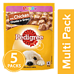 Pedigree Gravy is a nutritious and balanced food for your pet dog. Made with high-quality ingredients, Pedigree provides dogs with the 5 Signs of Good Health - stronger immune system, strong muscles, optimal digestion, strong bones & teeth and healthy skin and coat. Containing a higher moisture content, Pedigree gravy food pouches are ideal to keep your pooch hydrated and energetic. It can be mixed with any meal - Pedigree dry food or home-cooked food - to enhance taste and improve moisture-content.