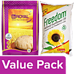 bb Combo Freedom Refined Oil - Sunflower 2x1L+BB Royal Superior Chakki Atta Fortified 5kg, Combo 2 Items