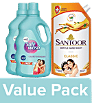 No Question askedbb Combo Safewash Liquid Detergent 1 kg (Get 1kg Free) + Santoor Handwash Classic 750 ml