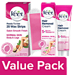 Veet Veet Hair Removal Cream 100 g + Full Body Waxing Kit, 20s for Normal Skin, Combo 2 Items