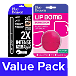No Question askedBlue Heaven 2X Intense Kajal Black Shock 0.31 g + Lip Bomb Bubble Gum Balm 8 g
