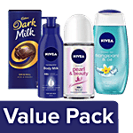 bb Combo Nivea x Cadbury Valentines: Body Lotion, Body Wash, Roll On, Dark Milk Chocolate, Combo 4 Items