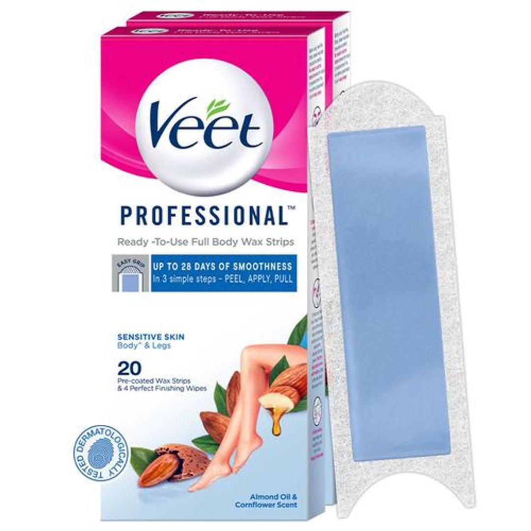 Veet Professional Waxing Strips Kit for Sensitive Skin, 20 Strips Pack of 2 Gel Wax Hair Removal for Women Up to 28 Days of Smoothness No Wax Heater or Wax Beans Required, 20 pc Pack of 2