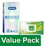 No Question askedbb Combo Durex Invisible Condoms 10 pcs + Dettol Skin & Surface Wipes, Original 40 pcs