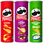 Pringles Original, 107g + Sour Cream & Onion, 107g + Fusion Chutney Potato Crisps, 102g, Combo (3 Items)