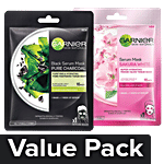 Garnier Skin Natural Serum sheetmask (2 Sakura white + Charcoal), Combo 2 Items