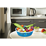 This bowl, made from plastic, is durable and easy to clean and maintain. It is round-shaped and is also easy to carry. The colour of the bowl makes it attractive and perfect for keeping on the dining table or storing in the kitchen. Keep your favourite fruits and vegetables in this basket. Keep it on the dining table or in your kitchen. You can stack up the vegetables and arrange them in a interesting way using the bowl.
