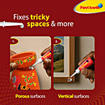 Fevikwik Adhesive is quick to stick your broken pieces by a drop of it. It is good at bonding the ambient condition without entailing an external energy supply. The glue dries immediately, and a tiny amount is required to achieve a strong bond. Nail polish remover can be used to debone the glue. It is a low viscous cyanoacrylate adhesive to bond close-fitting parts or components. The bonding is effective due to the product's wicking ability.