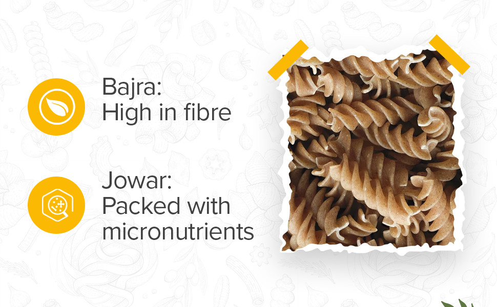 About the ProductHappy Chef’s Healthy Multi-Millet Pasta is here to satisfy all your Italian cuisine cravings. From the shape to the perfect al dente texture, you can have it all and show off your chef skills. This pasta is made from durum wheat, semolina and handpicked wholesome millets - Bajra, Jowar and Ragi. It has no added maida to give you a guilt-free experience so you can enjoy this beloved food. Our range of pasta is prepared hygienically and packed in a spick and span facility. It is created with love using premium quality ingredients and a hot air drying process to give you the ultimate texture experience in every bite. The pasta is made using an artisan method to give it an authentic traditional taste. Happy Chef is delighted to give you a healthier option to enjoy all kinds of food with your loved ones.