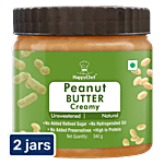 HappyChef Unsweetened Creamy Peanut Butter, 2x340 g (Multipack)