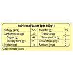 Energy (Kcal) 576, Carbohydrate (g) 49, Sugar (g) 47, Dietary Fibre (g) 2, Protein (g) 14, Total fat (g) 35, Trans fat (g) 0, Saturated Fat (g) 5, Cholesterol (g) 0, Sodium (g) 0