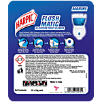 Harpic Disinfectant Toilet Cleaner is the one stop shop for all toilet cleaning needs. Unlike ordinary cleaners, it combines the benefits of Tough stain removal^, 99.9% germ kill and Freshness. The result is a sparkling clean, hygienic, fresh, and germ-free toilet without any malodour with every use of Harpic. 5x power action: 5 times better at lime scale removal VS ordinary cleaners, Helps eliminate mal-odour, Clings to attack stains, Kills all germs. India's # 1 Toilet Cleaner*. Always use Harpic toilet cleaner separately. Do not mix with other products. *Harpic claim as per Nielsen Retail Index data for period MAT Oct ‘20 for the India market in Cleaners – Toilet & Bathroom Category. ^Please refer to individual pack for details. #Kills 99.9% germs post 5 minutes contact with undiluted product. Harpic Flushmatic toilet cleaning cistern block is a drop-in tank tablet which can be used for any accessible cistern. It works by creating strong foam every time you flush the toilet, which helps to maintain cleanliness in the toilet bowl.