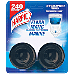 Harpic Flushmatic toilet cleaner works from inside the cistern to release a dose of powerful detergent with every flush. Distributing the liquid across the bowl helps you maintain a hygienic and fresh toilet and prevents the build-up of stains giving you a continuous clean toilet. You need not remove the pleated cloth wrapper on the block as this will dissolve in the water till it finishes, just drop the block directly into the cistern. For best results drop it at the opposite end to the water inlet, by the float. Wait for 10 minutes to let the block mix, before the first flush. Harpic Flushmatic toilet cistern block is a toilet hygiene product for continuous cleaning without any mess. It is touch free and hygienic and dissolves completely when finished. A single block lasts up to a month depending upon individual usage. Also, it lets you know when it needs replacing as the colour of the flushed water starts to fade. To keep the freshness going replace it with a new Flushmatic block as soon as the colour starts to fade. Harpic Flushmatic toilet cleaner is safe to be used with septic tanks and all other toilet cleaners. For regular cleaning, use Harpic liquid. With the new improved formula, each block now lasts upto 240 flushes.