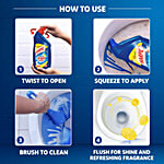 Usage Instructions for Toilet Cleaner Rim Block - Take the block out of the pack; stretch the plastic clip. Use the clip to attach and block securely into the rim of the toilet were flush water flows maximum. Leave it dipped into the toilet rim till the block dissolves completely. When the block is dissolved, simply take off the clip, throw it in the bin and replace it with a new one. This product can be used in a western toilet only.