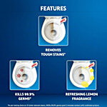 Harpic Disinfectant Toilet Cleaner is the one stop shop for all toilet cleaning needs. Unlike ordinary cleaners, it combines the benefits of Tough stain removal^, 99.9% germ kill and Freshness. The result is a sparkling clean, hygienic, fresh and germ-free toilet without any malodour with every use of Harpic. 5x power action: 5 times better at lime scale removal VS ordinary cleaners, Helps eliminate mal-odour, Clings to attack stains, Kills all germs. India's # 1 Toilet Cleaner*. Always use Harpic toilet cleaner separately. Do not mix with other products. *Harpic claim as per Nielsen Retail Index data for period MAT Oct ‘20 for the India market in Cleaners – Toilet & Bathroom Category. ^Please refer to individual pack for details. #Kills 99.9% germs post 5 minutes contact with undiluted product. You often spend more time doing the household chores than enjoying living at your own home. Harpic Toilet Rim Block takes away the hassle of keeping the toilet clean, giving you more time to admire and relax at home.