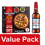 bb Combo Budweiser 00 Non-Alcoholic Beer 330ml + HappyChef Chicken Tikka Pizza-Large 450g, Combo 2 Items
