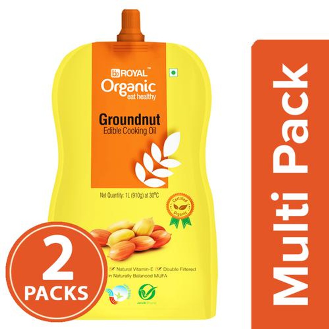 bb Royal Organic Organic Cold Pressed Groundnut Cooking Oil, 2 x 1 L (Multipack)