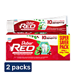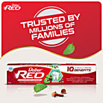 Dabur Red Paste is an unmistakable name when it comes to holistic Ayurvedic oral care. It is India's No.1 Ayurvedic Fluoride Free Paste and carries a unique blend of traditional Indian medicine and modern pharmaceutical technology, taking the best from both worlds, it provides complete protection from 7 Dental problems: cavities, gingivitis, plaque, toothache, bad breath, yellow teeth, plus weak teeth and gums. It also provides 35% betterment on oral care hygiene index in comparison to other regular toothpaste. It is a complete oral care solution for your entire family, as it is suitable for kids too. Our other specialised oral care product includes Dabur Red Gel Ayurvedic Gel for freshness & effective oral care and Dabur Lal Dant Manjan, tooth powder for strong teeth & healthy gums.