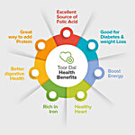 Toor Dal is not only delicious but also has nutritional value. Toor dal is an excellent source of nutrients and plant protein, and it also contains dietary fibre. In essence, legumes are nutritional though they represent a low-fat and low-cholesterol alternative. Legumes such as toor dal provide essential nutrients, fibre and protein for vegetarians. Toor dal rich in protein, vitamins and iron is often served with rich spices over rice and Rotis.
