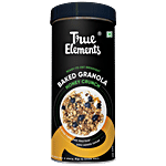 True Elements brings to you Baked Granola with Cranberries & Almonds that are loaded with health benefits and nutrients. This mix contains rolled oats, nuts, seeds and honey. It is highly nutritious and free from sugar. It is great to boost up your energy as it provides you with the required amount of daily nutrients and vitamins. These are baked to perfection, it gets crispy, toasted and golden-brown coloured. It is great for your health. Enjoy it with milk, yoghurt or curd and top it off with fruits or seeds of your choice.