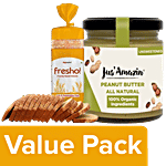 No Question askedbb Combo Fresho Whole Wheat Bread 400 g + Jus Amazin Organic Peanut Butter 200 g