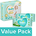 Pampers Premium Care Diaper Pants - XXL 30 pcs + Baby Wet Wipes 72 pcs (Pack Of 2), Combo 2 Items