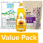 No Question askedbb Combo Natureland Atta 5kg, Sugar 1kg, Sunflower Oil 1L