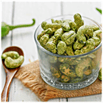 Roasted cashews married to green chillies. Lip-smacking good! Feel the heat & set your taste buds ablaze, with our spicy green chilli cashews. Tasty organic cashews are mildly spiced with dried green chilli powder and salt to create this super tasty snack. Offered cashews are processed at our hygienically maintained production unit with the help of advanced machines. In addition, the offered chilli cashews are widely served as snacks with tea or coffee across India. These cashews are acknowledged for their features like crispiness, purity and long shelf life. High in protein, source of fibre, no added sugar, roasted Kaju, healthy snacks, no transfat, and roasted nuts.